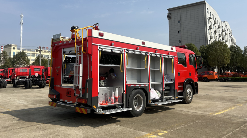 豪沃6.1噸水罐消防車采用中國重汽集團濟南卡車股份有限公司生產的ZZ1187K501GF1底盤改裝而成。整車由消防員乘員室和車身兩大部分組成,乘員室為單排改雙排,可乘坐2+4人,該車為內藏罐結構,車身兩側為器材箱,中部為罐體,后部為泵房。載液罐體為優質碳鋼,內部噴涂環氧底漆及環氧瀝青漆,與底盤采用彈性連接,載水量6100kg,裝備了上海茸申消防設備有限公司生產CB10/40型消防泵,額定流量40L/S,車頂安裝成都威斯特消防機械有限公司生產的PS8/40W型車用消防炮。該車最大的特點是載液量大、操控性好、維修簡便。可廣泛應用于公安消防隊、廠礦企業及社區、碼頭等場所,撲救大型油類火災和一般物質火災。 | |||