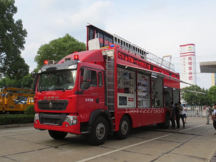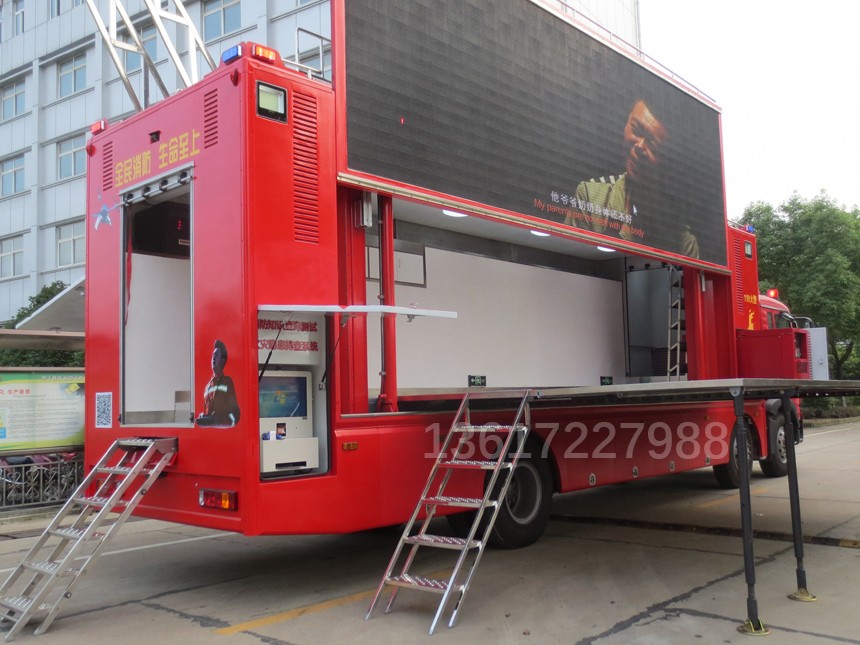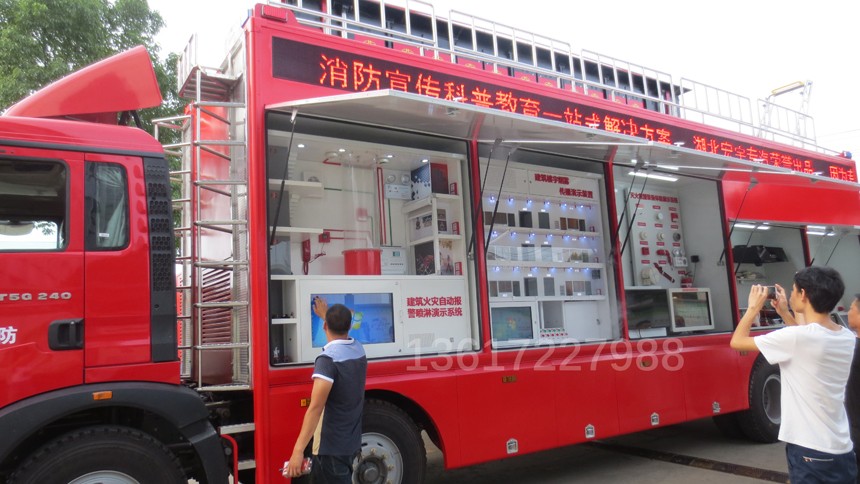 專用功能:具備獨立進行消防宣傳功能,宣傳車主要包含多媒體宣傳系統、消防知識查詢系統、廚房安全隱患排查系統、常見火災虛擬演示系統、大屏模擬滅火演示系統、AR火災態勢演練系統、VR火災逃生訓練系統。具備音、視頻宣傳教育和全方位互動體驗的特色,各宣傳教育互動體驗單元模塊,都是貼近國內消防安全宣傳教育實際需要,引進國內外前沿技術定向研發而成。 | |||