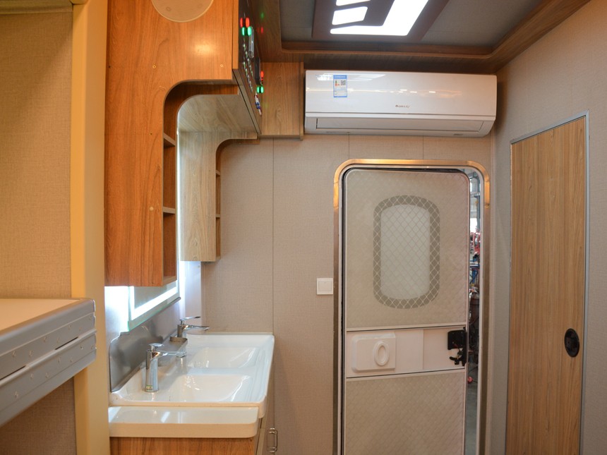 專用功能:室內(nèi)住宿設(shè)備為12組高低床,可提供24人舒適宿營(yíng);配備有冷暖空氣調(diào)節(jié)系統(tǒng)、電視影音系統(tǒng)、照明系統(tǒng)、儲(chǔ)物柜、床頭燈及開關(guān)插座等必要生活設(shè)施;獨(dú)立衛(wèi)生間配備有盥洗臺(tái)、LED背光整容鏡、強(qiáng)制通風(fēng)換氣裝置、雙層外推窗、節(jié)水型不銹鋼便池等設(shè)施;發(fā)電機(jī)功率5KW,額定電壓220V,供電時(shí)長(zhǎng)約6-10小時(shí)。 | |||